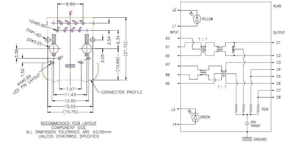 Compatibilité de connecteur RJ45 intégrant un transformateur