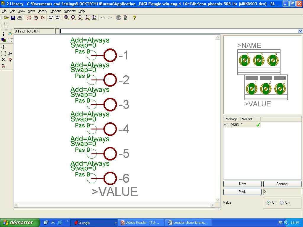 mais comment je vais faire, vous ne savais pas s'il ya des librarie pour des simple connecteur a vis la ou l'espacement entre les pins et de 3.5mm?